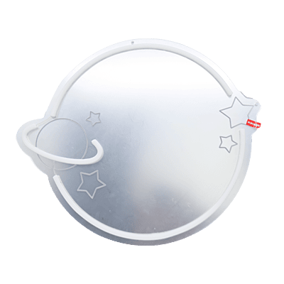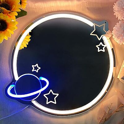 The MDB32 Moon LED Mirror is a stylish and modern wall mirror featuring a glowing LED outline and playful star/planet accents.