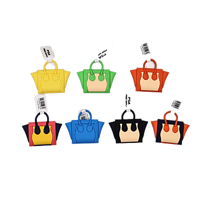 Each keychain features a stylish mini bag design with assorted colours and brand-inspired looks.