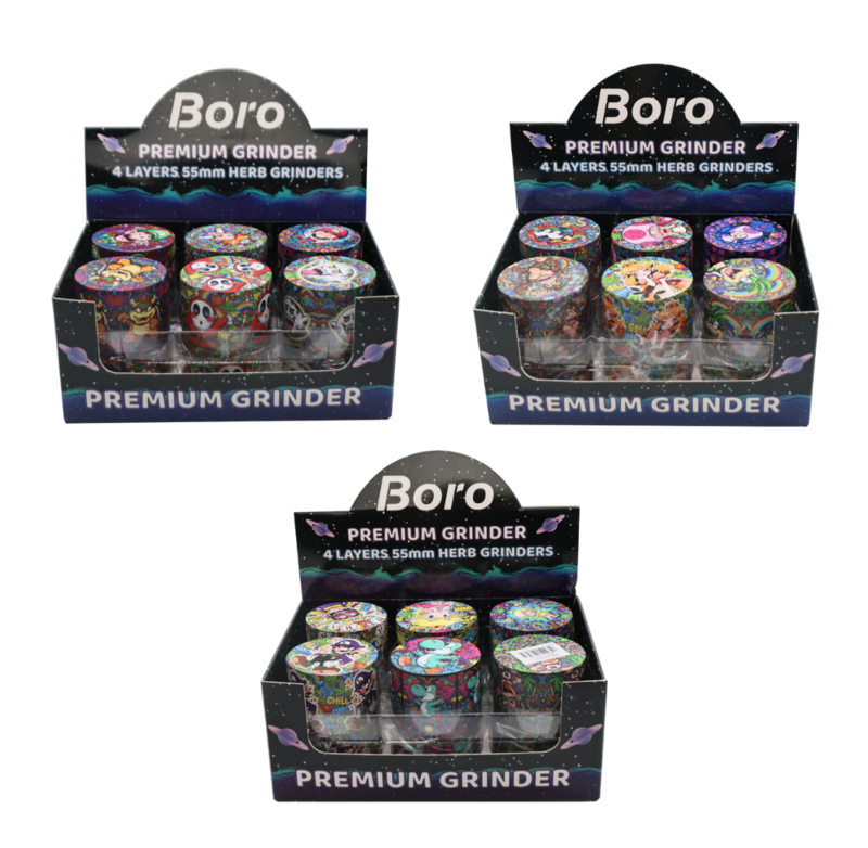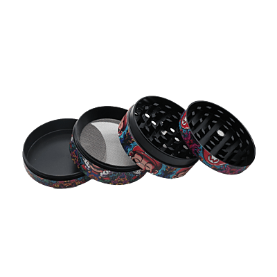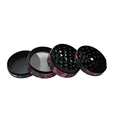 Each grinder features a full 4-piece system including sharp teeth, mesh screen, and a spacious kief catcher.