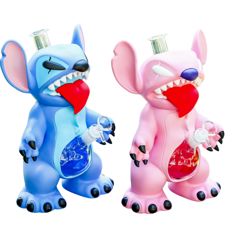 Bring fun character vibes to your setup with the Silicone Stitch Bong 28cm, available in Blue and Pink.